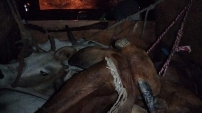 मोहखेड़:- इन दिनों मोहखेड़ लावाघोघरी क्षेत्र से जोरो पर गोवंश तस्करी का खेल जारी है जिस पर विहिप बजरंग दल,ओर अंतरराष्ट्रीय हिंदू परिषद राष्ट्रीय बजरंग दल तथा पुलिस प्रशासन के सहयोग से लगातार गोवंश तस्करी पर रोक लगाने का प्रयास किया जा रहा है इसी बीच अचानक शनिवार रात्रि करीब 3 बजे मुखबिर से सूचना प्राप्त हुई की एक सिल्वर कलर टवेरा वाहन क्रमांक mh 12 fc 5788 में कुक्रता पूर्वक गोवंश भरकर महाराष्ट्र के कत्लखानों की ओर लेकर जा रही है जिसकी सूचना पर सभी बजरंगियों द्वारा आनन फानन में टवेरा गाड़ी पकड़ने के लिए कार्य योजना बनाई जिसके बाद लावाघोघरी (बंजारी माता के पास इस गाड़ी को पकड़ने का प्रयास किया गया लेकिन गाड़ी चकमा देकर आगे जाकर पुनः बजरंगियों द्वारा पकड़ लिया गया पकड़ते समय गोतस्क मोका देख भाग निकले जिसके बाद टवेरा वाहन में सात नग गोवंश कुक्रता पूर्वक भरे पाए गए गोवंश को सुरक्षित मेघासिवनी गोशाला में सुरक्षित रख कर टवेरा वाहन को लावाघोघरी पुलिस की सुपुर्द कर दिया गया।
