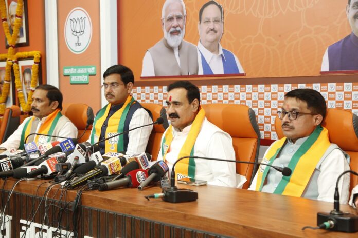 भोपाल(प्रतीक पवार), 08/04/2024। कांग्रेस अध्यक्ष जीतू पटवारी राहुल गांधी के पक्के चेले है। राहुल गांधी को हिन्दी नहीं आती और जीतू पटवारी को गिनती नहीं आती इसलिए उन्हें कांग्रेस में मची भगदड़ को वह नही गिन पा रहे है। 336 का जो आंकड़ा जीतू पटवारी बता रहे हैं उतनी संख्या से ज्यादा तो सिर्फ जनप्रतिनिधि जैसे विधायक, पूर्व विधायक, पूर्व केन्द्रीय मंत्री, पूर्व सांसद, जिला पंचायत अध्यक्ष, नगर पालिका अध्यक्ष, जनपद सदस्य, पार्षद भाजपा की विचारधारा और प्रधानमंत्री श्री नरेन्द्र मोदी जी की नीति, नेतृत्व व नियत से प्रभावित होकर भाजपा में सम्मिलित हुए है। 6 अपै्रल को बूथों पर 2,82,242 नए लोगों ने भाजपा की सदस्यता ली है। यह बात भारतीय जनता पार्टी के वरिष्ठ नेता, पूर्व मंत्री एवं न्यू ज्वॉनिंग टोली के प्रदेश संयोजक डॉ. नरोत्तम मिश्रा ने भाजपा प्रदेष मीडिया सेन्टर में पत्रकार-वार्ता को सम्बोधित करते हुए कही।
