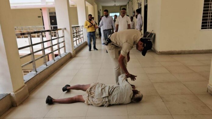 65 वर्षीय बुजुर्ग शंकरलाल पाटीदार सीतामऊ तहसील के साखतली गांव के रहने वाले हैं। मंगलवार को शंकरलाल कलेक्टर कार्यालय के मुख्य द्वार से जनसुनवाई कक्ष तक जाने के लिए लोटने लगे। बाद में सुरक्षाकर्मी उन्हें उठाकर जनसुनवाई कक्ष में ले गए।