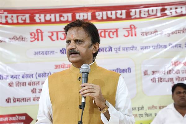 उप मुख्यमंत्री श्री शुक्ल रीवा में बंसल समाज के शपथ ग्रहण समारोह में शामिल हुए। उन्होंने कहा कि यह समाज एकता के सूत्र में बंधकर अपना कार्य पूरी निष्ठा एवं समर्पण भाव से करता है। मैं हमेशा समाज के हित के लिए तत्परता से कार्य करता रहूँगा। सिंधु भवन में आयोजित कार्यक्रम में उप मुख्यमंत्री श्री शुक्ल ने कहा कि प्रधानमंत्री श्री नरेन्द्र मोदी के नेतृत्व में सर्वहारा वर्ग के कल्याण के लिए अनेक योजनाएं संचालित की जा रही हैं। यह सरकार गरीबों की सरकार है और उनके समग्र विकास के लिए हर संभव प्रयास किए जा रहे हैं। अध्यक्ष नगर निगम श्री व्यंकटेश पाण्डेय, पूर्व महापौर श्री राजेन्द्र ताम्रकार सहित जन-प्रतिनिधि उपस्थित रहे।