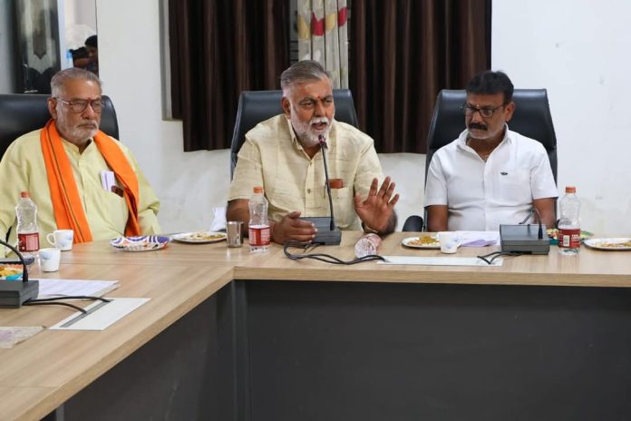 मुख्यमंत्री डॉ. मोहन यादव के नेतृत्व में प्रदेश में ‘जल गंगा संवर्धन अभियान’ 30 मार्च से प्रारंभ होगा। इस अभियान को प्रभावी रूप से लागू करने के लिए नगर पालिका नरसिंहपुर को कार्य योजना बनाने के निर्देश दिए गए हैं। पंचायत एवं ग्रामीण विकास तथा श्रम मंत्री श्री प्रहलाद सिंह पटेल ने नगर पालिका परिषद नरसिंहपुर की विशेष बैठक में अध्यक्षता करते हुए कहा कि जब हम पूरे मनोयोग से शहर की बेहतरी के प्रयास करेंगे, तभी शहर स्वच्छ और सुंदर बन सकता है। उन्होंने वार्ड सदस्यों को अपने-अपने क्षेत्र को स्वच्छ एवं सुंदर बनाने के लिए सक्रिय रूप से कार्य करने की अपील की।