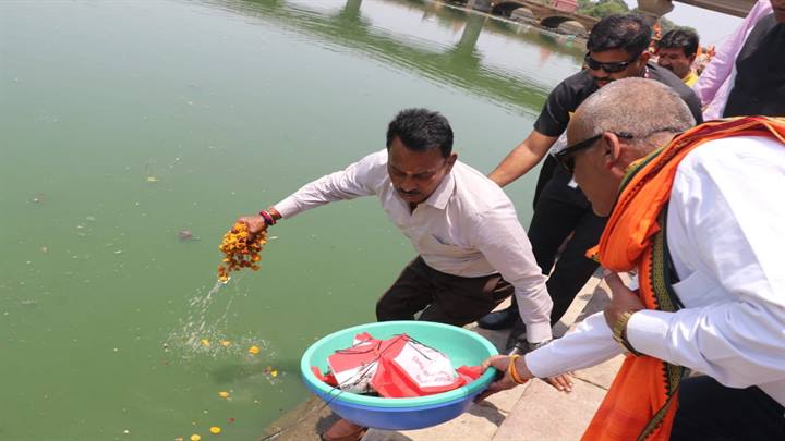 जल संसाधन मंत्री श्री तुलसीराम सिलावट जी ने बेतवा नदी के बड़वाले घाट पर आरती की और साफ सफाई कर स्वच्छता का संदेश संप्रेषित किया है। इस अवसर पर विदिशा विधायक श्री मुकेश टंडन, कुरवाई विधायक श्री हरि सिंह सप्रे, बासौदा विधायक श्री हरि सिंह रघुवंशी काॅ-आपरेटिव बैंक के पूर्व अध्यक्ष श्याम सुंदर शर्मा समेत अन्य जनप्रतिनिधि, कलेक्टर श्री अंशुल गुप्ता पुलिस अधीक्षक श्री रोहित काशवानी के अलावा विभिन्न विभागों के अधिकारी कर्मचारीगणों ने भी स्वच्छता संबंधी कार्यो में सहभागिता निभाई इस अवसर पर मीडियाकर्मी भी मौजूद रहे।