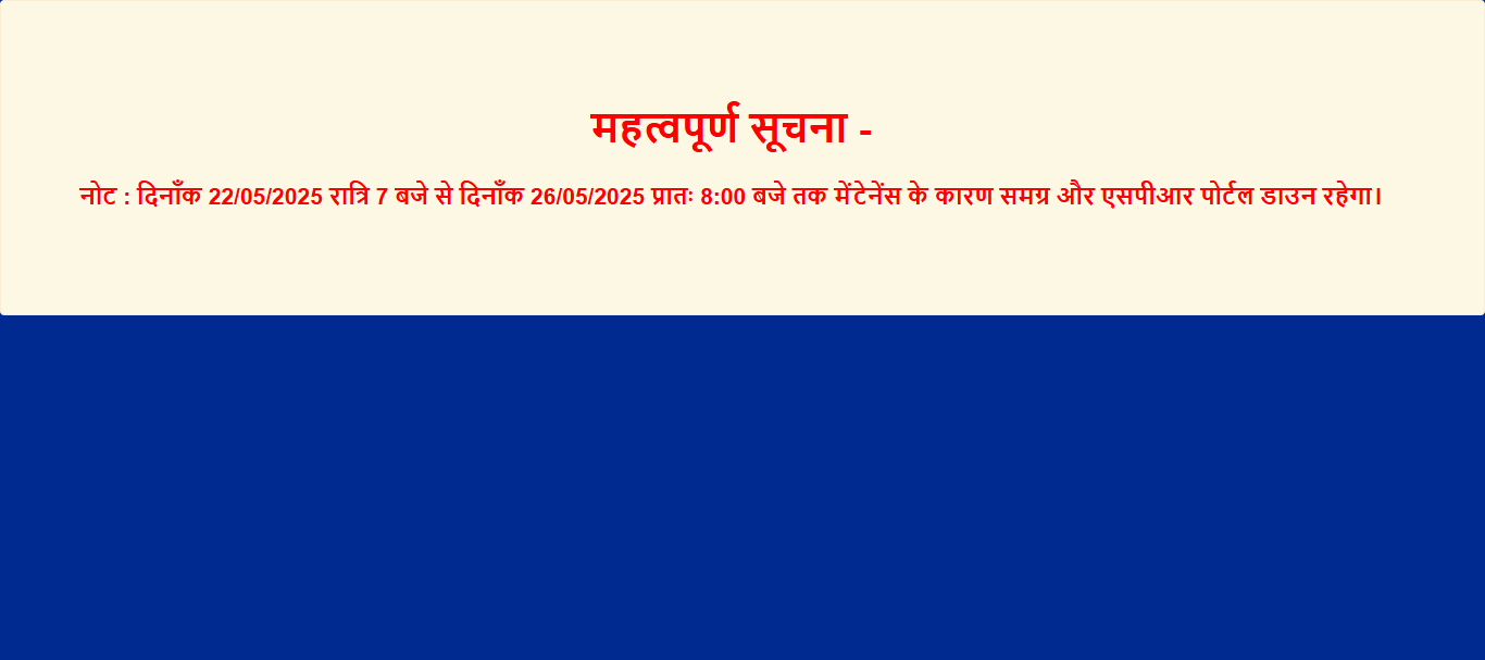 मध्यप्रदेश स्टेट इलेक्ट्रॉनिक्स डेवलपमेंट कॉरपोरेशन द्वारा संचालित समग्र पोर्टल एवं इससे संबंधित समस्त एप्लिकेशंस (Samagra / SPR / BPL / Web Services) के लिए सर्वर संधारण एवं सुधार कार्य किया जाना है। मेंटेनेंस गतिविधियों के लिए समग्र पोर्टल को दिनांक 22 मई शाम 7 बजे से लेकर 26 मई 2025 प्रातः 8 बजे तक अस्थायी रूप से बंद रखा जाएगा।