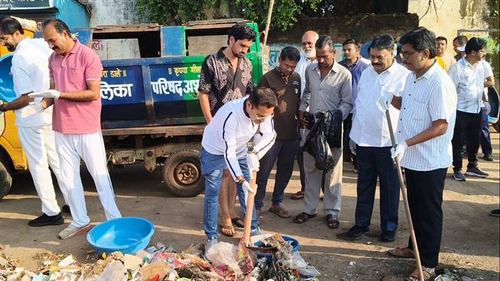 मध्यप्रदेश शासन के निर्देशानुसार जिले में 17 सितम्बर से 2 अक्टूबर तक सेवा पखवाड़ा अभियान का आयोजन किया गया है। अभियान के शुभारंभ अवसर पर बुधवार को कलेक्टर श्री आदित्य सिंह, अशोकनगर पूर्व विधायक श्री जजपाल सिंह जज्जी सहित जनप्रतिनिधियों, अधिकारियों द्वारा नया बस स्टेण्ड अशोकनगर में स्वच्छता हेतु झाडू लगाकर एवं कचरा एकत्रित कर श्रमदान किया गया। साथ ही सेवा पखवाड़ा अभियान के प्रचार प्रसार हेतु जागरूकता रथ को हरी झंडी दिखाकर रवाना किया। साथ ही सांदीपनि विद्यालय टोरिया अशोकनगर परिसर में एक बगिया माँ के नाम अभियान के तहत 75 पौधों का पौधरोपण किया गया। सामुदायिक श्रमदान कार्यक्रम में लिया भाग सेवा पखवाडा अभियान के तहत कलेक्टर श्री आदित्य सिंह ने रघुवंशी धर्मशाला अशोकनगर के समीप आयोजित सामुदायिक स्वच्छता हेतु श्रमदान कार्यक्रम में भाग लिया। इस अवसर मुख्य कार्यपालन अधिकारी जिला पंचायत श्री राजेश जैन, अपर कलेक्टर श्री डी.एन.सिंह,मुख्य नगरपालिका अधिकारी श्री विनोद उन्नीतान,जिला कार्यक्रम अधिकारी महिला एवं बाल विकास श्री चन्द्रसेना भिड़े सहित जिला अधिकारी उपस्थित रहकर श्रमदान कर स्वच्छता कार्यक्रम में भाग लिया।