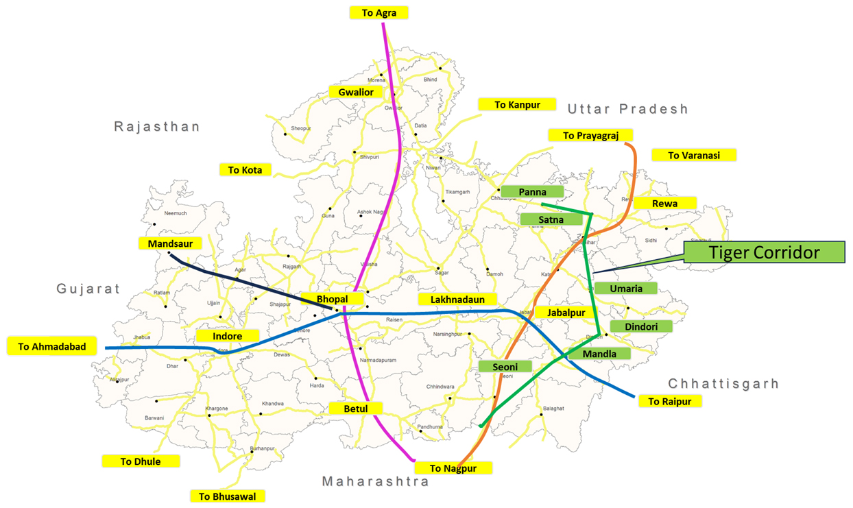 निर्माण संरक्षण और कनेक्टिविटी को साथ लेकर चलने की अवधारणा के तहत कर रही है। इस परियोजना के अंतर्गत प्रमुख हाईवे नेटवर्क का उन्नयन किया जा रहा है, साथ ही अन्य संपर्क मार्गों को जोड़ते हुए देश के चार प्रमुख टाइगर रिज़र्व—पेंच, कान्हा, बांधवगढ़ और पन्ना—को आपस में जोड़ा जाएगा।