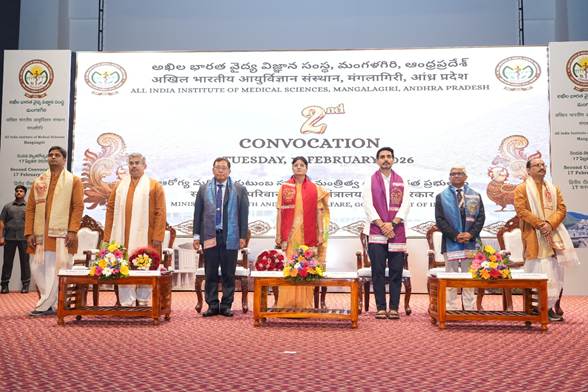 केंद्रीय स्वास्थ्य एवं परिवार कल्याण राज्य मंत्री श्रीमती अनुप्रिया पटेल ने आज आंध्र प्रदेश के सूचना प्रौद्योगिकी, इलेक्ट्रॉनिक्स, संचार एवं मानव संसाधन मंत्री श्री नारा लोकेश की उपस्थिति में अखिल भारतीय आयुर्वेद विज्ञान संस्थान (एम्स), मंगलागिरी के दूसरे दीक्षांत समारोह को संबोधित किया।